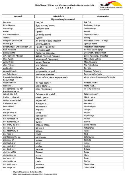 Wörter und Wendungen für den Deutschunterricht: UKRAINISCH. Eine Zusammenstellung von Vokabeln und Wendungen, die in jedem Unterricht gebraucht werden, u.a. Basisvokabeln, Zeiten, Zahlen und Operatoren für den Unterricht (ZFA Deutsche Auslandsschularbeit International).